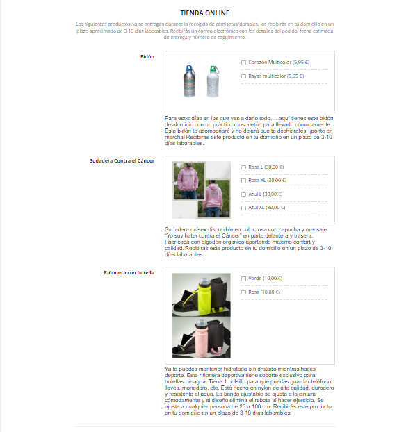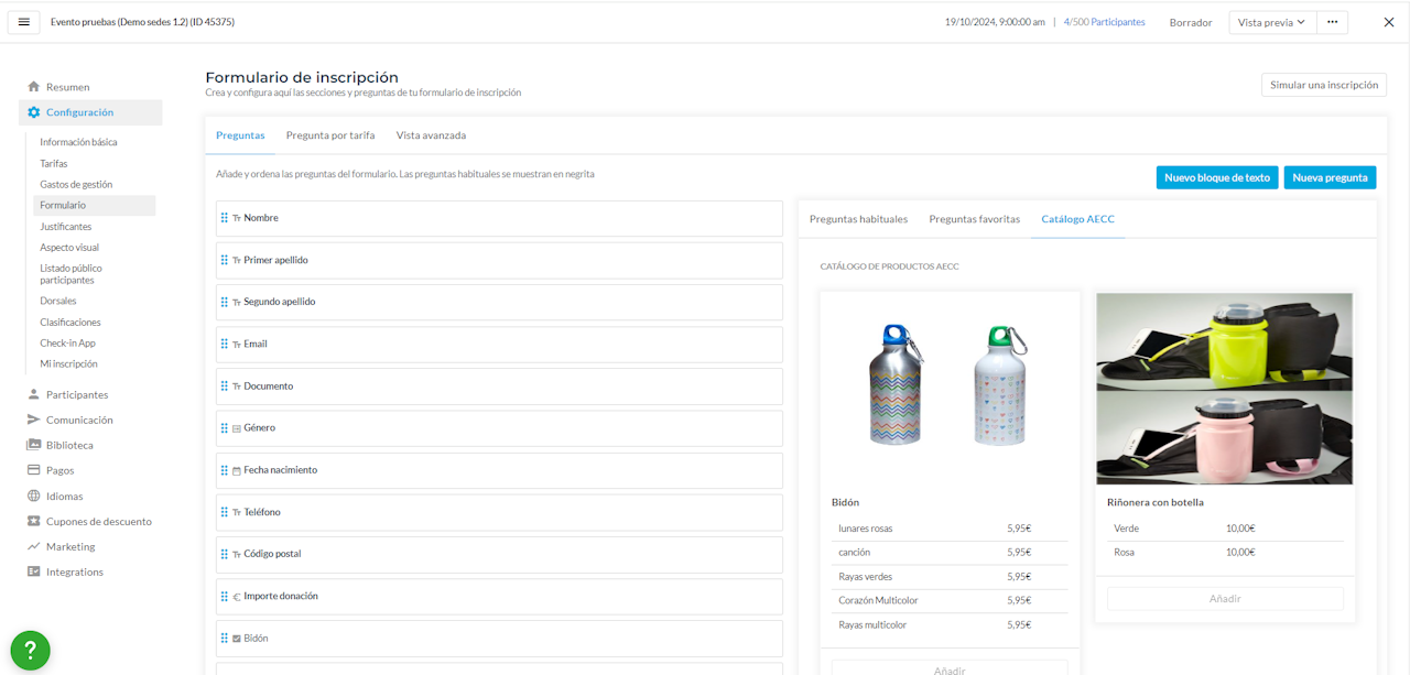 En todos los eventos de AECC nos vamos a encontrar con productos nacionales que vende AECC central a través de los formularios de inscripción.