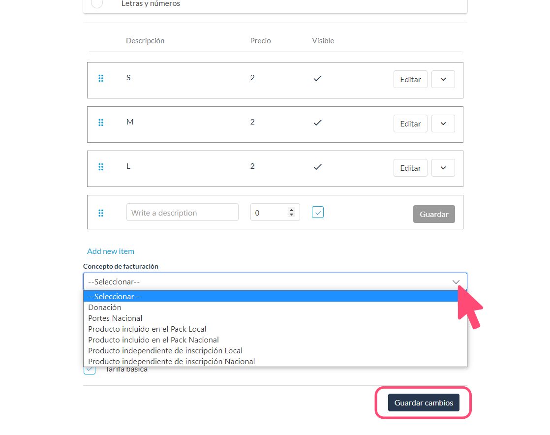Te indicamos cómo rellenar los conceptos de facturación en los productos que ofrezcas.