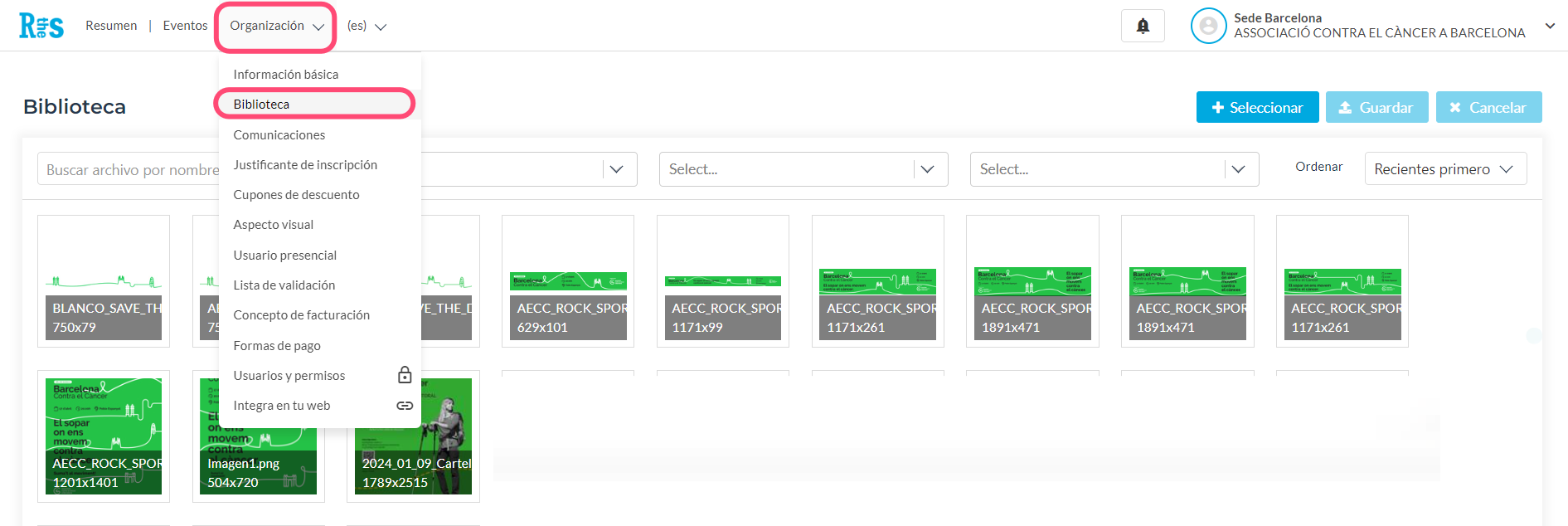 Aquí se guardan todas las imágenes y archivos de todos tus eventos.