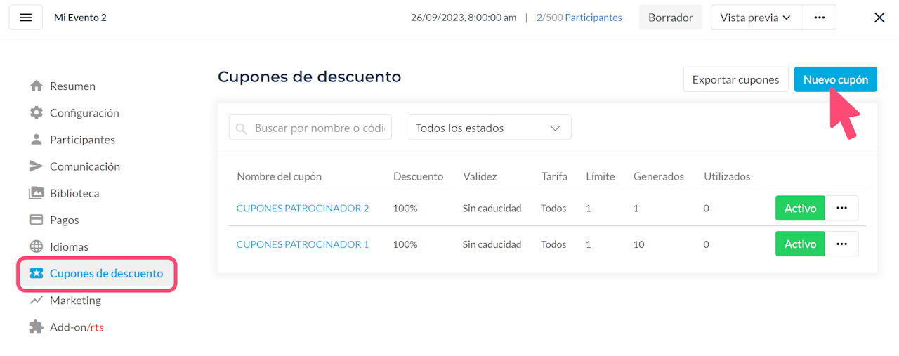 Una vez hayas creado el cupón ACTÍVALO para que funcione!