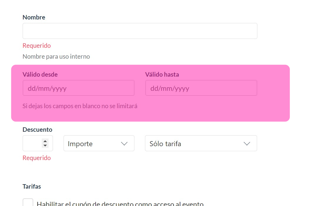 Puedes configurar las fechas en las que podrán usar el cupón.