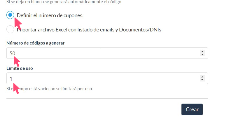 - Le decimos al sistema el nº de cupones que queremos crear (Ej: 50 cupones)