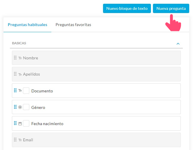 Llamamos preguntas habituales a las comunes en cualquier evento. Ej: Nombre, Apellidos, mail, etc...