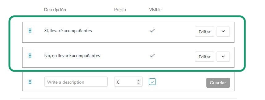 Además de las preguntas habituales, podemos crear preguntas personalizadas (Ej: ¿Vendrás con algún/a acompañante?