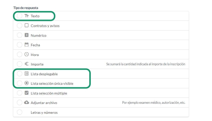 Podremos elegir que tipo de respuesta queremos que tenga nuestra pregunta.
