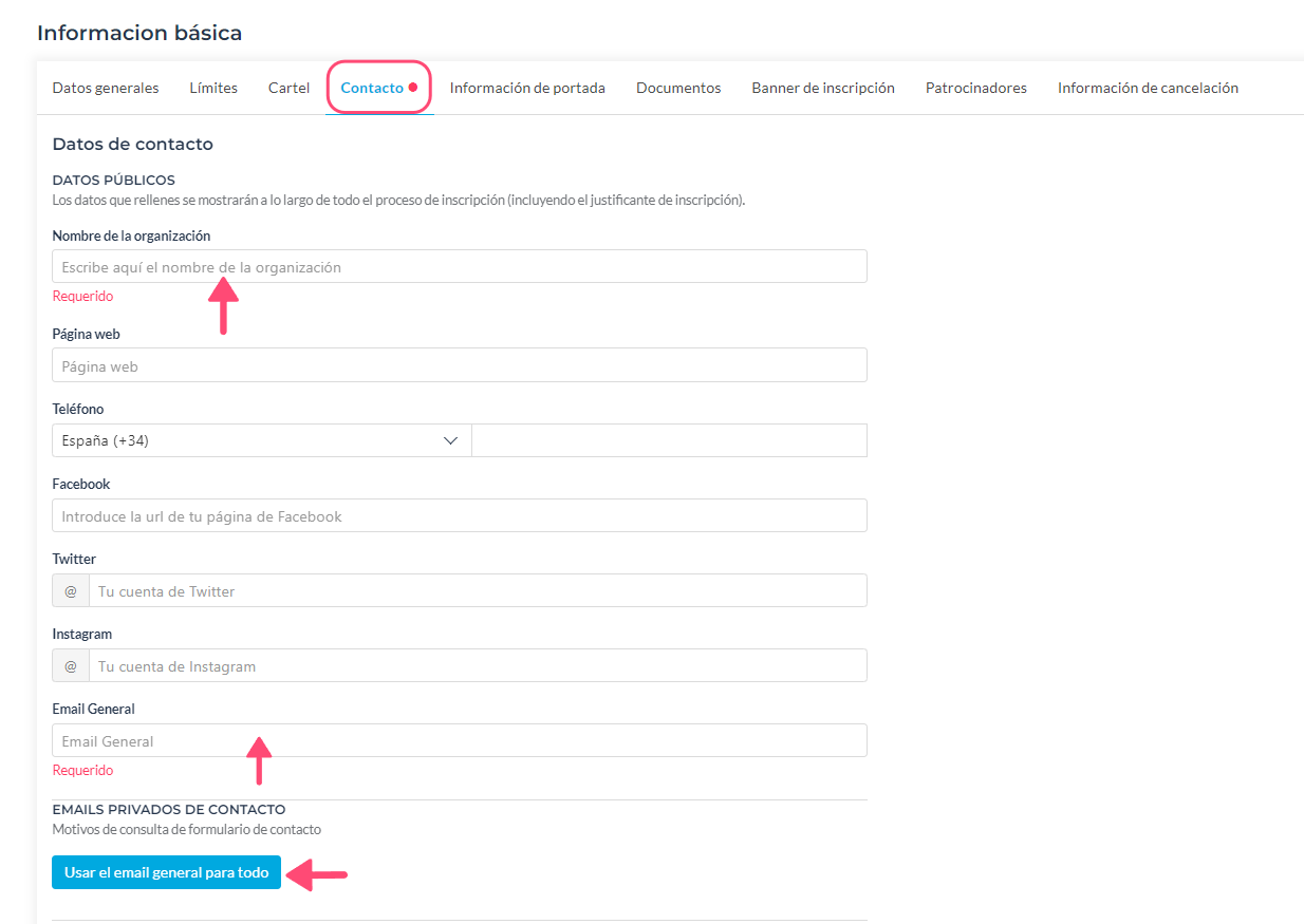 **Pulsa en Usar el mail general para todo: para usar ese mismo mail de contacto siempre independientemente del motivo de la consulta