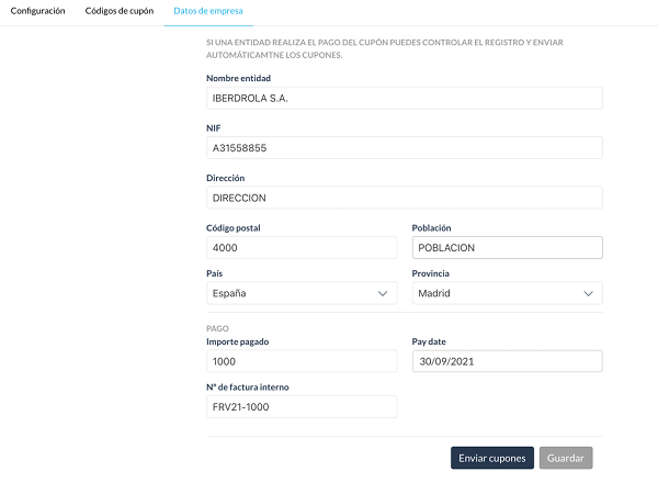 Puedes configurar varios cupones para una empresa. El proceso será el mismo que hemos señalado en el tutorial "Configuración de cupones".