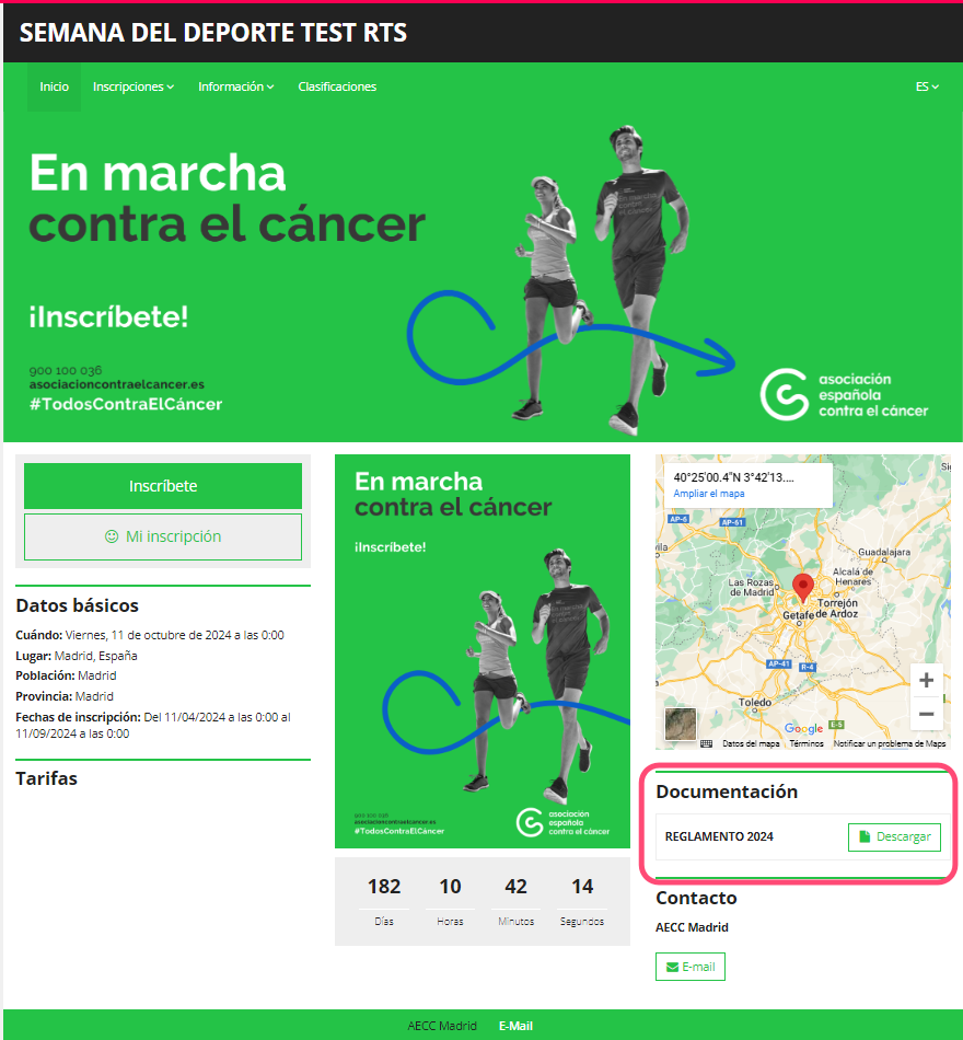 En este apartado puedes subir documentación que puedan descargar los participantes desde la portada como reglamento, recorridos, etc...
