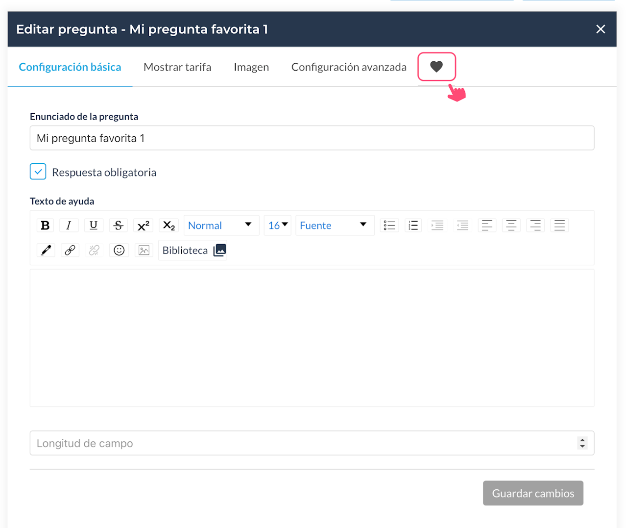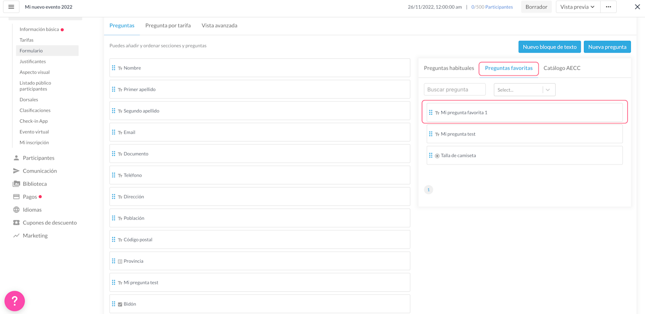 En cualquier momento puedes guardar una pregunta como "favorita". La pregunta quedará guardada y podrás duplicarla en otros eventos.