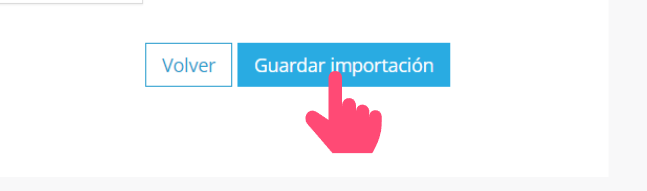 - Pulsaremos en guardar importación y esperaremos a que el sistema nos avise de que los registros se han importado correctamente.