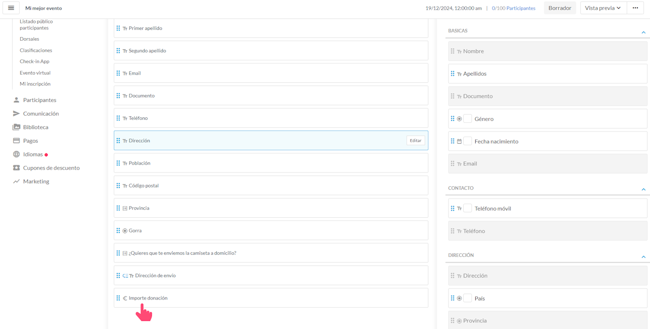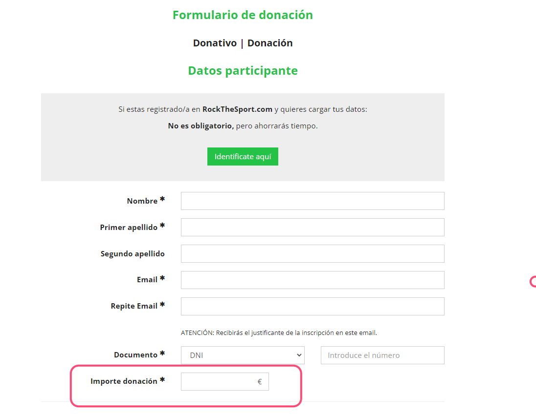 El sistema creará automáticamente una pregunta en el formulario de inscripción de "Importe donativo" que será libre en importe.