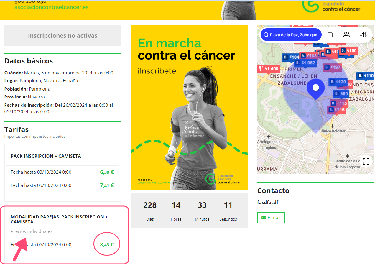 En el ejemplo que mostramos en esta imagen, tenemos una modalidad de tarifa grupos en las que cada componente de la pareja va a pagar un total de 8,43€.